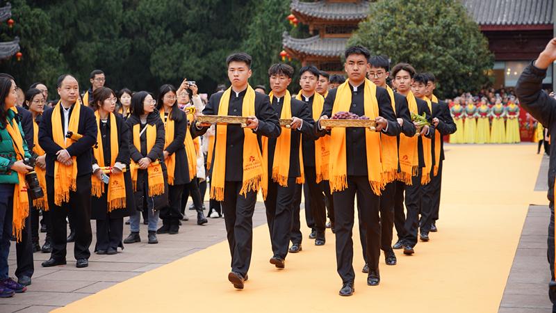 初獻禮環節,41名兩岸學子敬獻書卷;亞獻禮環節,20名兩岸各界人士代表上臺凈手上香,祈愿福澤盛世、國泰民安;終獻禮環節,兩岸嘉賓向文昌帝君敬獻花籃。整個典禮莊嚴肅穆、精彩隆重,伴隨恢宏的《頌文昌》與祭祀樂舞,甲辰年文昌祭祀大典圓滿禮成。